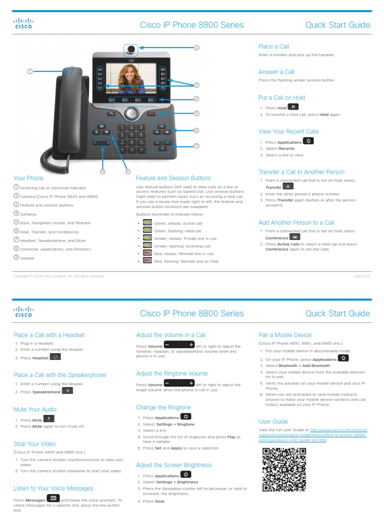 Cisco IP Phone 8800 Series Quick Start Guide Telephone Voicemail